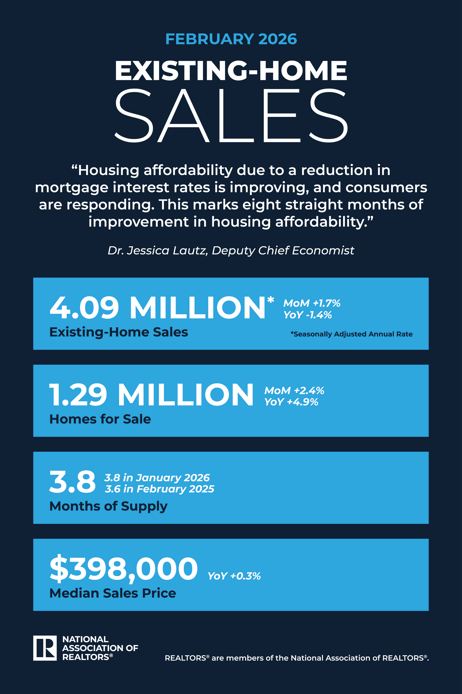 WASHINGTON—Existing-home sales increased by 1.7% month-over-month in February, according to the National Association of Realtors Existing-Home Sales Report released on March 10.